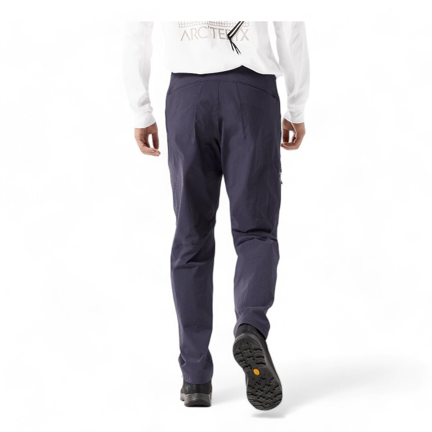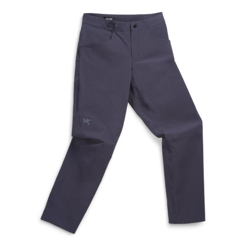 Geared to climb, crag, gym, approach Arc'teryx's Konseal Pant's advanced design combines durability, performance and comfort with a look that easily goes off the rock. The fabric combines nylons strength and elastane's stretch. A gusseted crotch and articulated knees free you to move, tapered legs improve line of sight to your feet, the low-profile waist rides comfortably under a harness and pockets include an easy-access zippered one at the thigh.