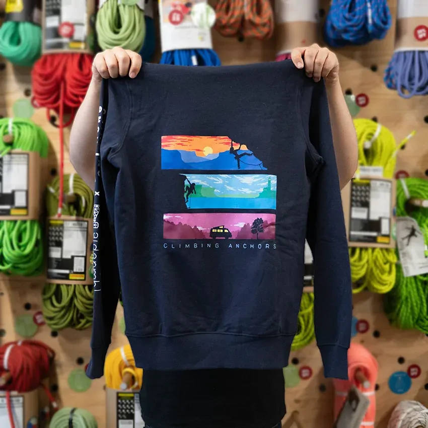Introducing the Van Life Climbing Anchors Hoody, a perfect blend of style and sustainability. Designed by the talented Aidan Howes, this jumper embodies a passion for adventure. Printed on 'Earth Positive' jumpers, made from 100% organic products in accordance with the Global Organic Textile Standard, it's a conscious choice for the environmentally aware. The eye-catching 'Van Life' design on the back showcases the beauty and vibrancy of the climbing lifestyle while the Climbing Anchors x Aidan logo adorns the front left chest. Embrace the spirit of exploration with one of CA's Favourite Torso-heater.