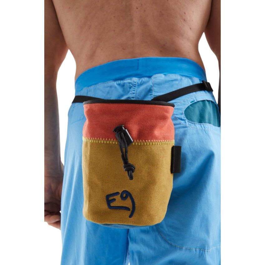 E9's favourite Aglio chalkbag is now back in a 100% cotton design. Keep your hands chalked up with ease with this generous sized, supple chalk bag.