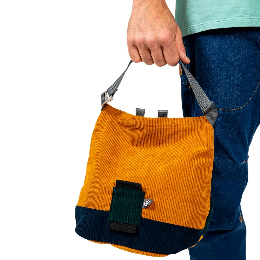 The iconic Gulp VS Chalk Bucket is highly favuored by bouldering enthusiasts for its blend of style and practicality. It features two brush holders, a spacious and convenient pocket, and an innovative magnetic closure that ensures easy access while preventing chalk spills. This thoughtfully designed bag is imported and built to meet the demands of serious climbers.