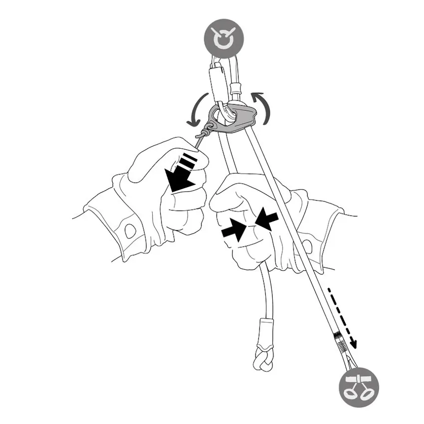 Adjustable double lanyard allows the user to tether themselves to an anchor and install a rappel system when multi-pitch climbing: