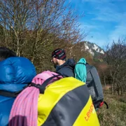 Safety gear and equipment includes: helmets, slings, carabiners, harnesses, ropes, protection etc.